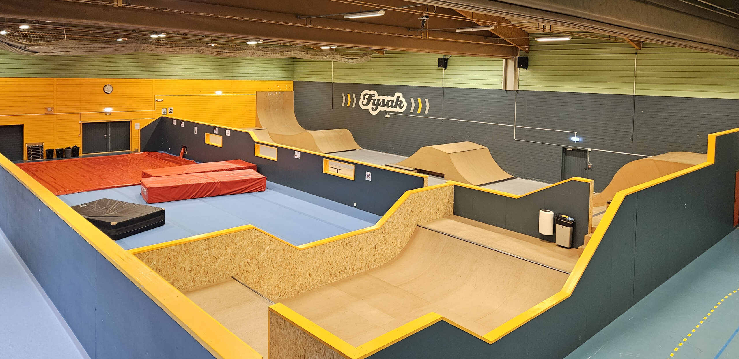 Inne på Fysak Åsane er det tilrettelagt for skating, rollerblades, bmx, sparkesykkel, tricking, turn, bordtennis, hopp og sprett. Vi har noe skateboard, sparkesykler og hjelmer til utlån, men ta med eget utstyr om dere har, eget utstyr passer som regel best.